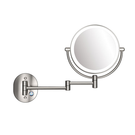 Hardwired Double Sided Magnification Round LED Metal Wall Mirror in Brushed Nickel-HW6208BN-LED