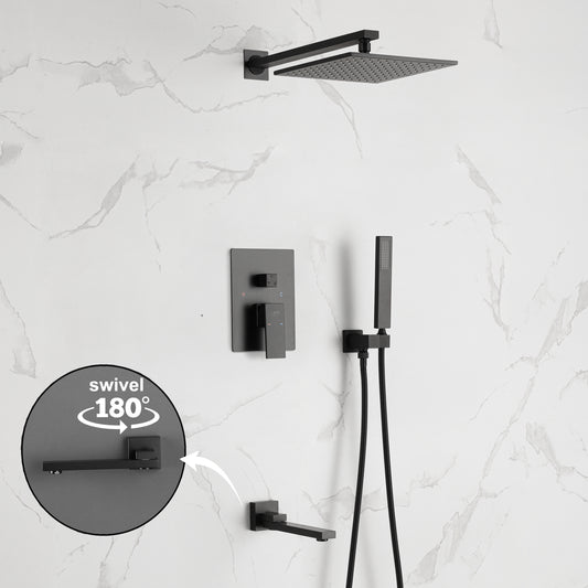 Tub & Shower Faucet with Rough in-Valve in Black-7611BLK