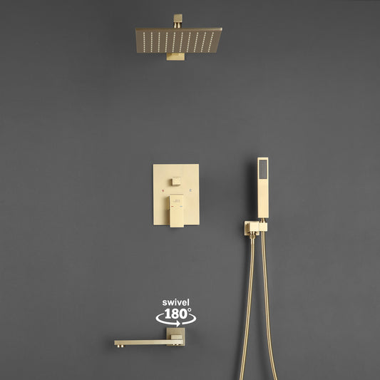 Complete Shower System with Rough in-Valve in Gold-7615G